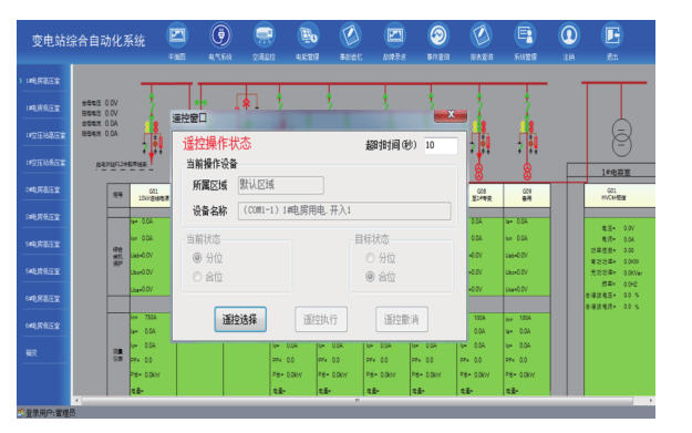 操作人員可通過后臺屏幕對斷路器,隔離開關,變壓器分接頭,電容器組投切進行遠方操作。操作閉鎖包括電腦五防及閉鎖系統(tǒng),斷路器、刀閘的操作閉鎖等,支持遙控閉鎖邏輯判斷