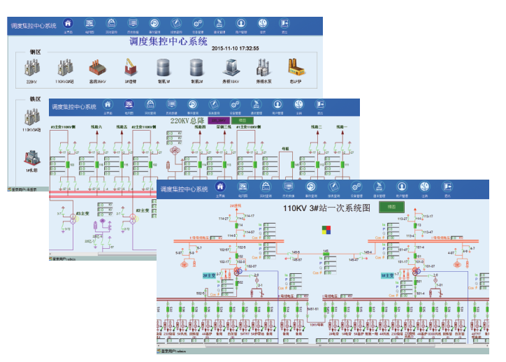 實(shí)時(shí)采集各站點(diǎn)數(shù)據(jù),并通過圖形界面顯示站點(diǎn)的分布情況,通過點(diǎn)擊圖上的各個(gè)站點(diǎn)可查看該站內(nèi)的變電設(shè)備一次接線圖以及實(shí)時(shí)數(shù)據(jù)
