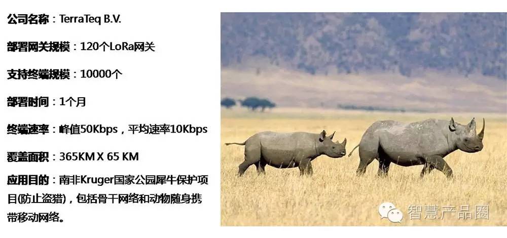 LoRa易于建設(shè)和部署,得到越來越多國內(nèi)公司的關(guān)注和跟進。例如深圳通感微電子有限公司成立了專門的項目組從事LoRa模塊、網(wǎng)關(guān)和整體方案的開發(fā)。據(jù)該公司副總經(jīng)理劉文上介紹,通感微做了不少相關(guān)LoRa的項目,例如可實時顯示停車位分布狀況的停車場監(jiān)控系統(tǒng)(圖5)、實現(xiàn)無線土壤檢測的智能農(nóng)業(yè)系統(tǒng)(圖6)、防止盜獵的南非Kruger國家公園犀牛保護項目(圖7)等。